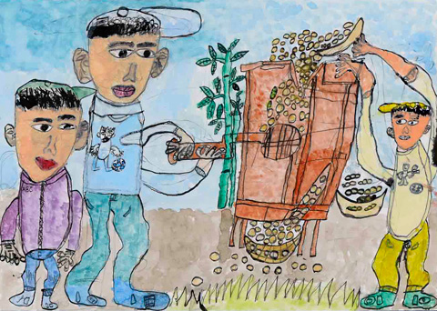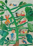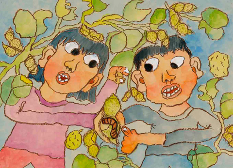 大豆100粒運動を支える会では、大豆を育てる子どもたちの「大豆への思いや感動」を表現した絵画作品、大豆の成長記録を絵と文章で綴った観察記録のコンクールを開催しています。これは、子どもたちへの教育的効果〜『自己発見し、保持発展を容易にし、逆境にあっても“時”を客観視し、逆手の取れるときを待てるでしょう(辰巳芳子会長)』〜を期待しているものです。